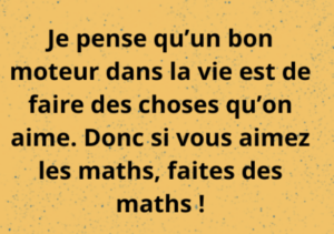 Je pense qu’un bon moteur dans la vie est de faire des choses qu’on aime. Donc si vous aimez les maths, faites des maths ! En plus, les études de mathématiques offrent énormément de débouchés : les métiers de l’enseignement et de la recherche, bien sûr, mais aussi un grand nombre de métiers d’ingénierie mathématique, qui peuvent être tournés vers des domaines